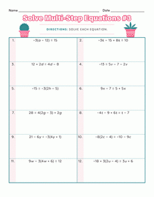 One step algebra equations worksheets often start with simple equations and gradually increase in difficulty to challenge students. These worksheets can be used in the classroom or as homework assignments to reinforce the concept and help students improve their algebraic skills.