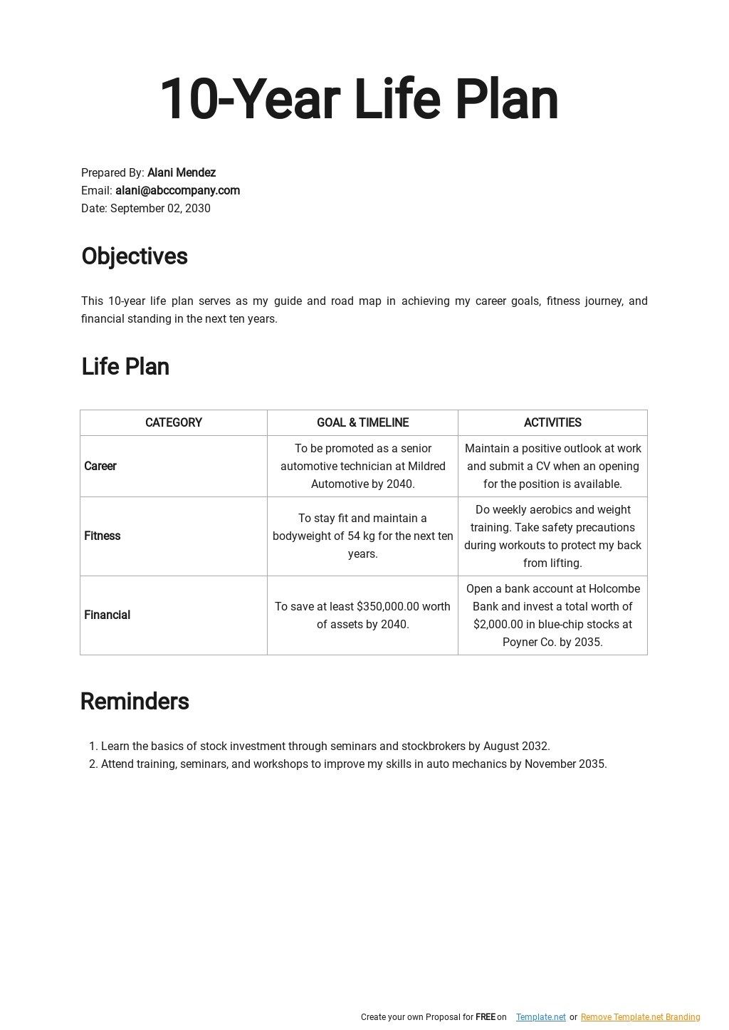10 year plan template