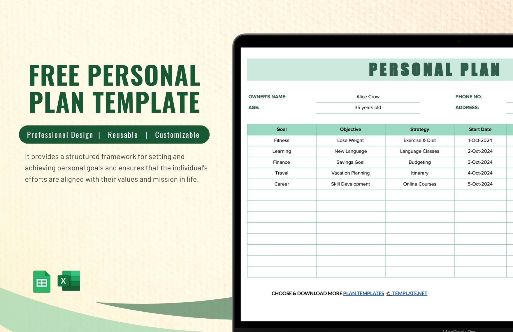 10 Year Personal Financial Plan Template Google Docs Word Apple
