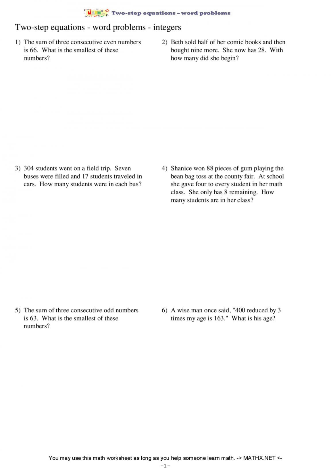 By practicing with two-step equations word problems worksheets, students can improve their algebra skills and develop a deeper understanding of mathematical concepts. These worksheets can provide students with the opportunity to apply their knowledge in a meaningful way and build their confidence in solving equations. With consistent practice and guidance, students can become proficient in solving two-step equations word problems and excel in their algebra studies.