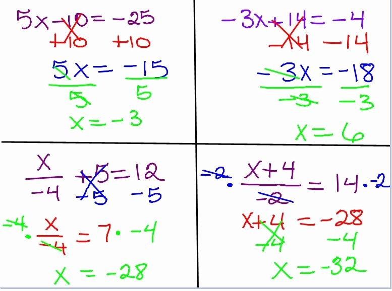 2 Step Equations Worksheet with Answers