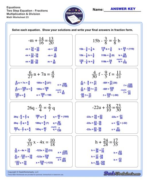 2 Step Equations Worksheets