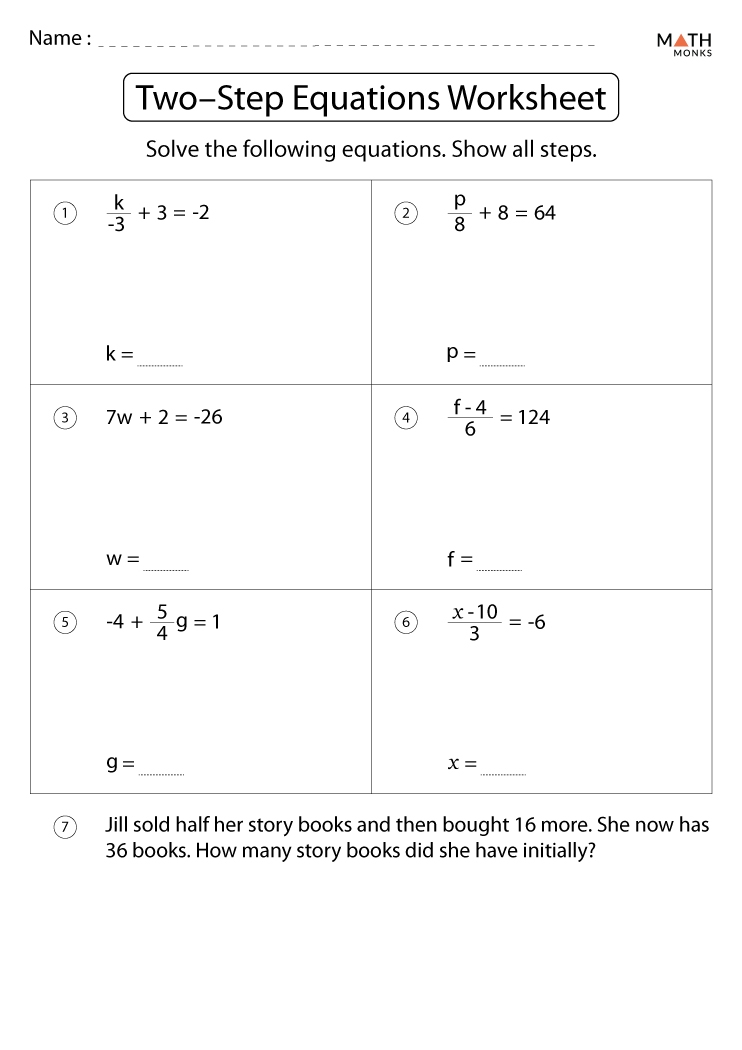 Two Step Equations Worksheets Math Monks