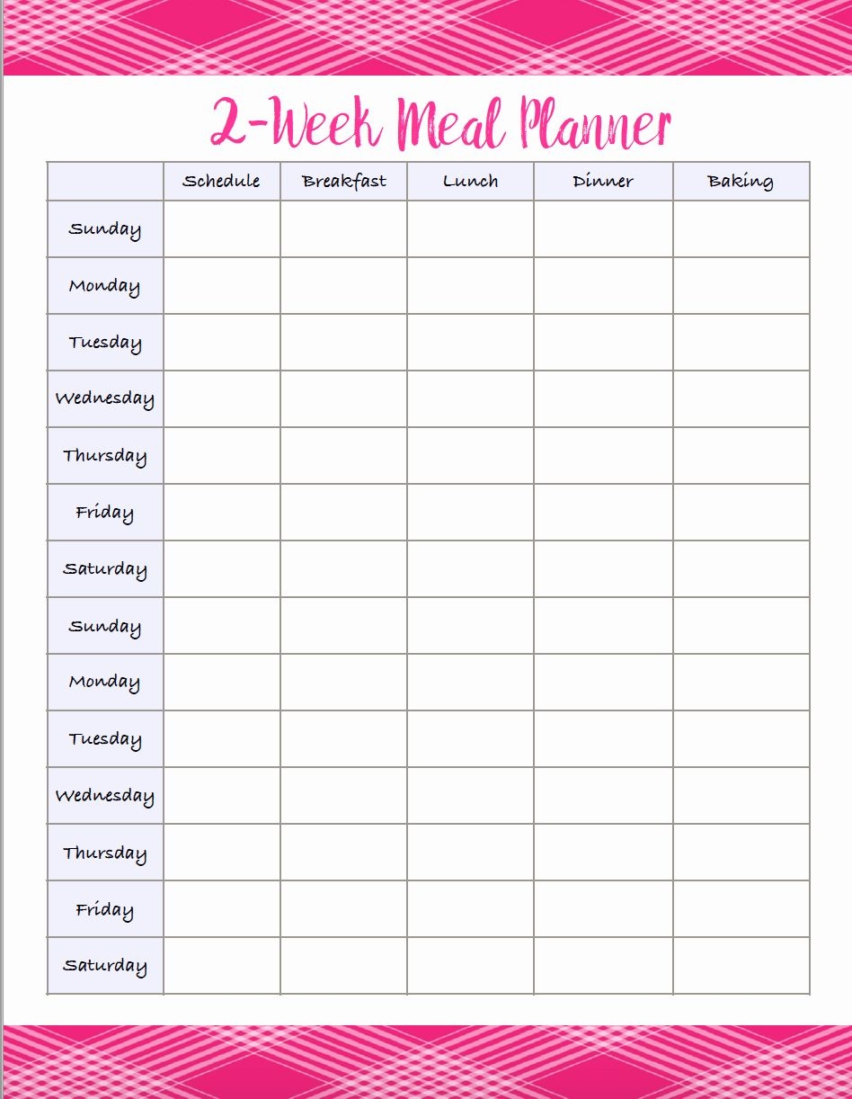 Here is a simple template you can use to create a 2-week meal plan: