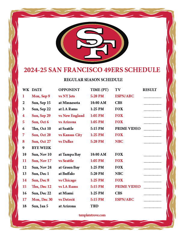 With a talented roster and dedicated coaching staff, the San Francisco 49ers are poised for success in the 2024 season. Fans can expect an exciting and competitive team that will give their all on the field.
