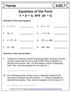 Equations are an essential part of mathematics and are used to represent relationships between different quantities. By solving equations, students can learn how to manipulate numbers and variables to find the value of unknowns. 6th grade math equations worksheets provide students with the opportunity to practice solving equations and improve their algebraic skills.