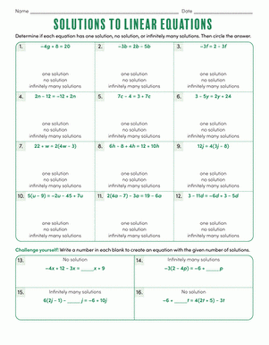 One way to practice and reinforce the understanding of linear equations is through worksheets. These worksheets typically consist of a series of problems that require students to solve for the value of the variable in the equation. They can vary in difficulty, allowing students to gradually build their skills and confidence in solving linear equations.