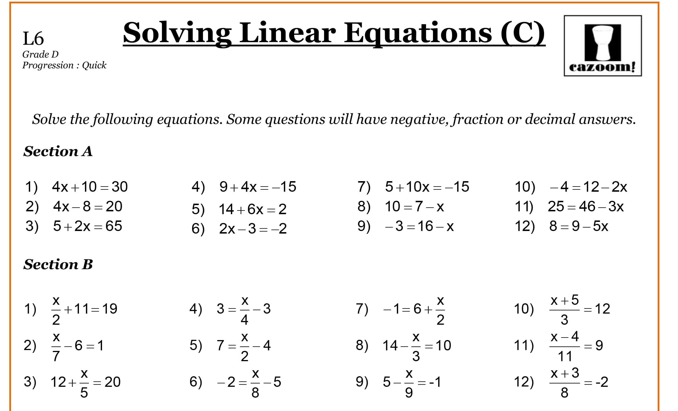 Grade 8 Math Linear Equations Worksheets