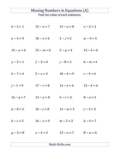 One type of adding and subtracting equations worksheet may include simple equations with one variable, where students are required to perform the operations and solve for the unknown variable. These worksheets can help students build a solid foundation in basic algebraic concepts.
