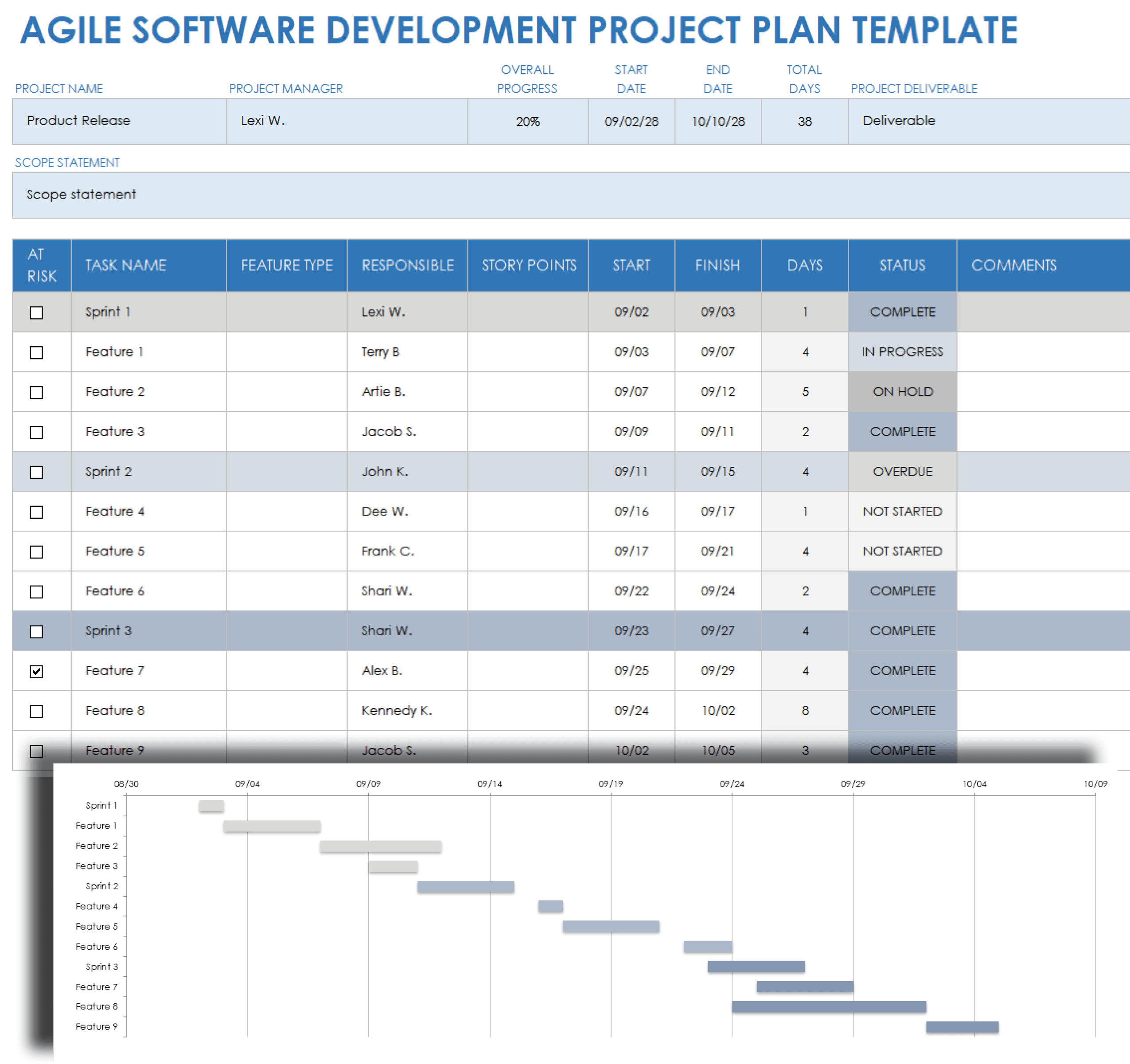 When creating an agile software development project plan template, it’s important to include the following key elements: