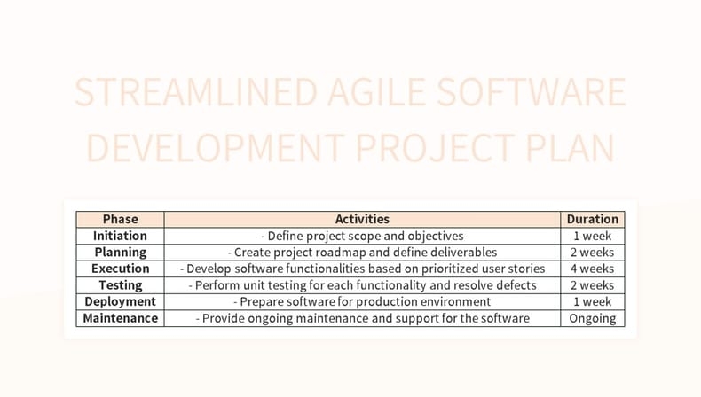 By following this agile software development project plan template, project managers can ensure that their teams are working efficiently and collaboratively towards a common goal. This template can be customized to fit the specific needs of each project, making it a versatile tool for project planning and execution.