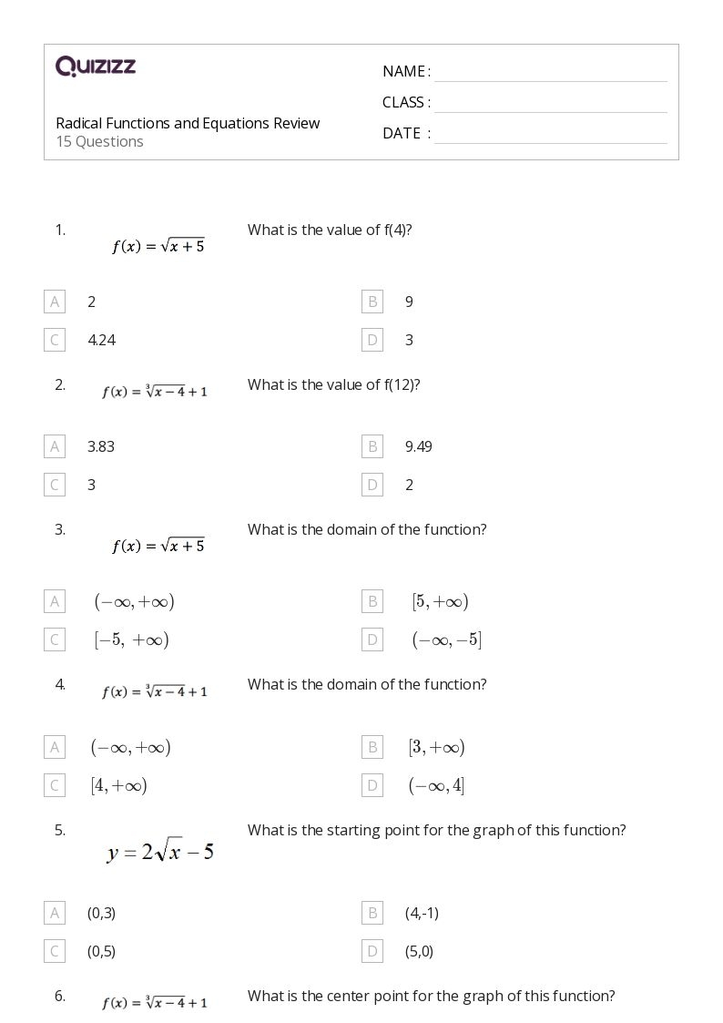50 Radical Equations And Functions Worksheets On Quizizz Free