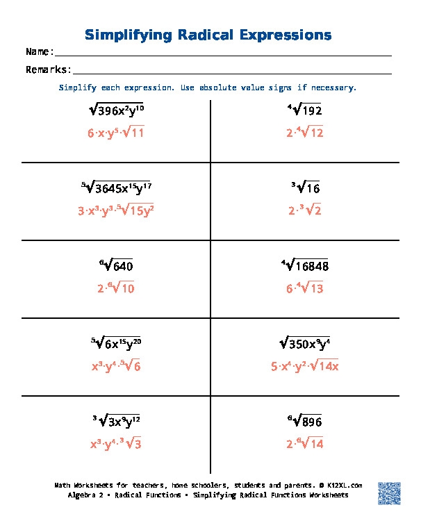 In conclusion, algebra 2 solving radical equations worksheets are a valuable tool for students to practice and master the skills needed to solve radical equations. By working through a variety of problems, students can improve their understanding of the rules and techniques involved in solving radical equations, ultimately leading to success in their algebra 2 studies.