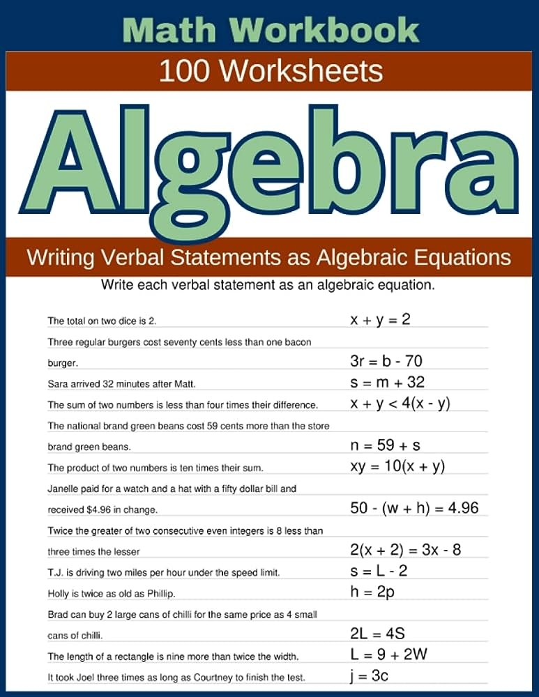 Free Printable Elementary Algebra Worksheets Also Available Online