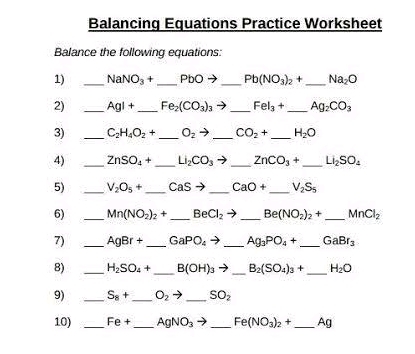 When it comes to chemistry, one of the fundamental skills that students need to master is balancing chemical equations. This process involves ensuring that the number of atoms of each element is the same on both sides of the equation. It may seem daunting at first, but with practice and the right resources, such as a balance the equations worksheet, students can improve their understanding and proficiency in this important aspect of chemistry.