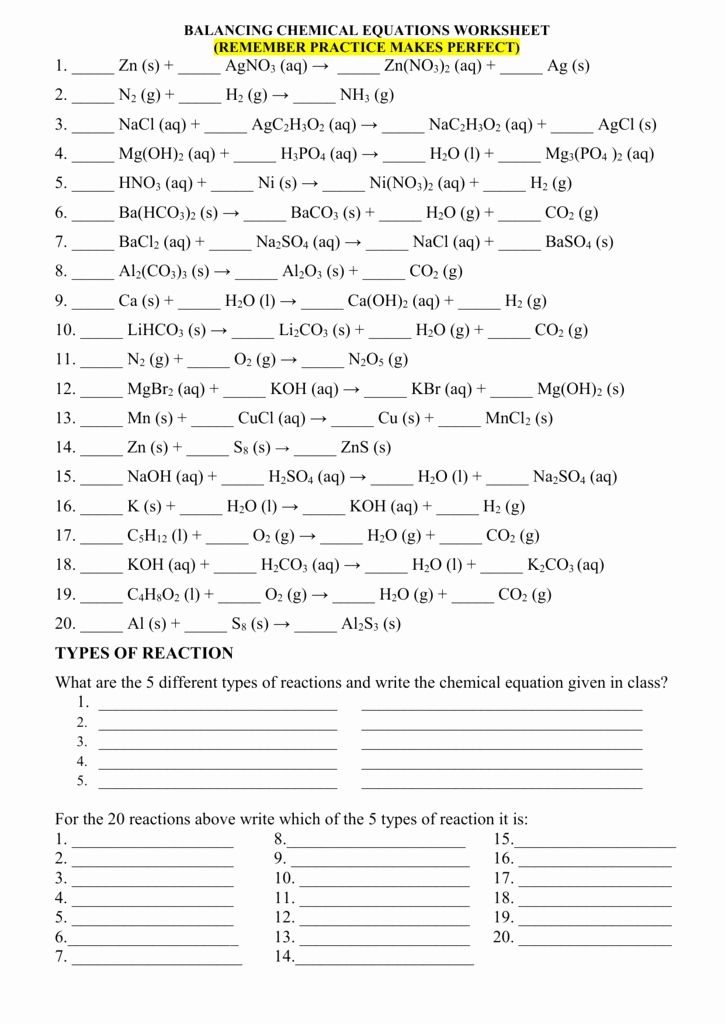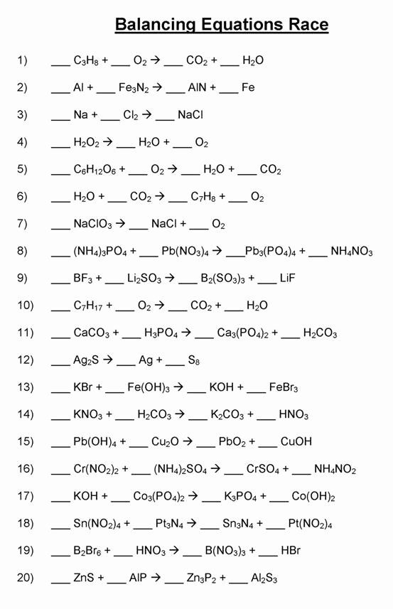 Balancing Chemical Equation Worksheet Unique Balancing Chemical