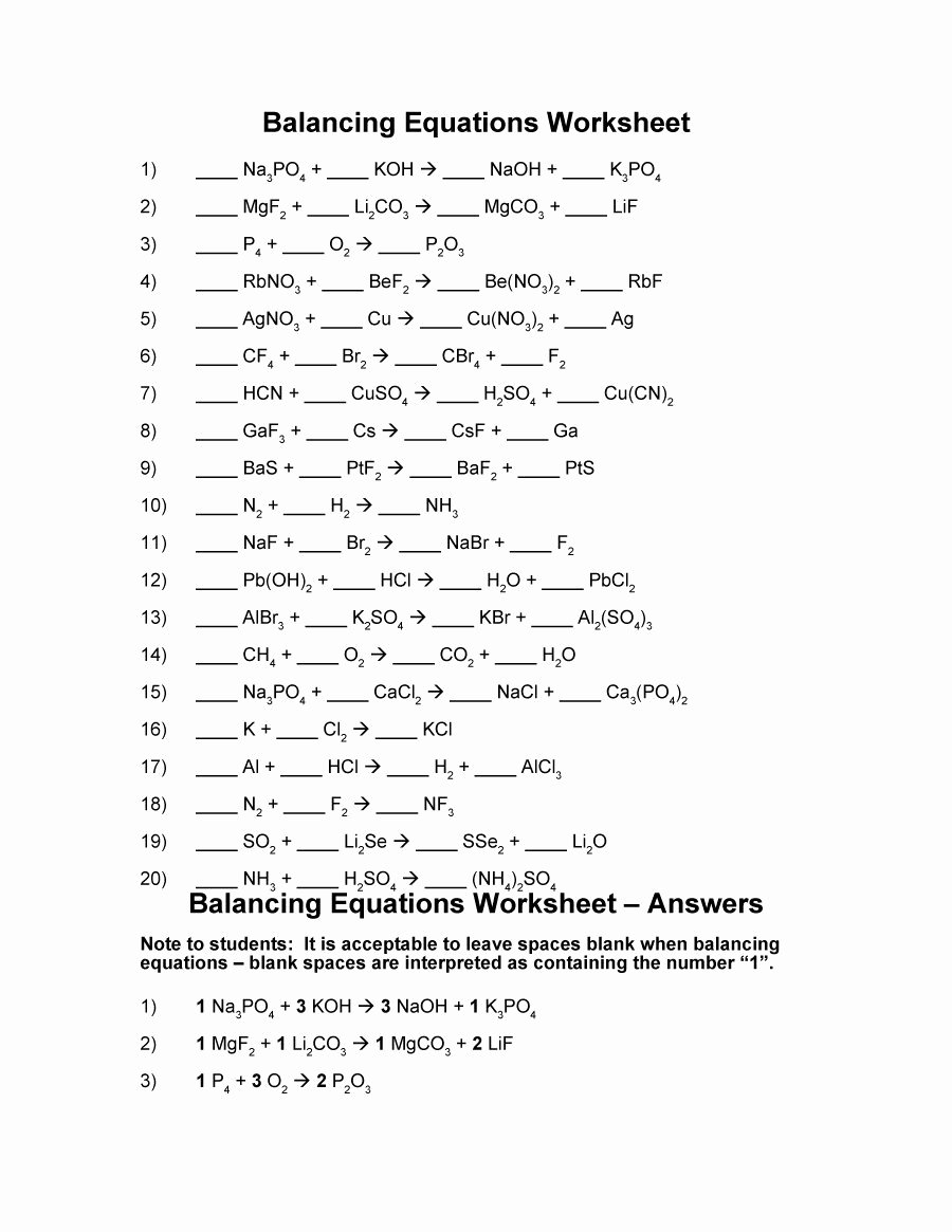 One valuable resource for students looking to improve their skills in balancing chemical equations is worksheets with answers. These worksheets provide students with a series of equations to practice on, along with the correct answers for them to check their work. This allows students to see where they may have gone wrong and learn from their mistakes, ultimately improving their understanding of the concept.