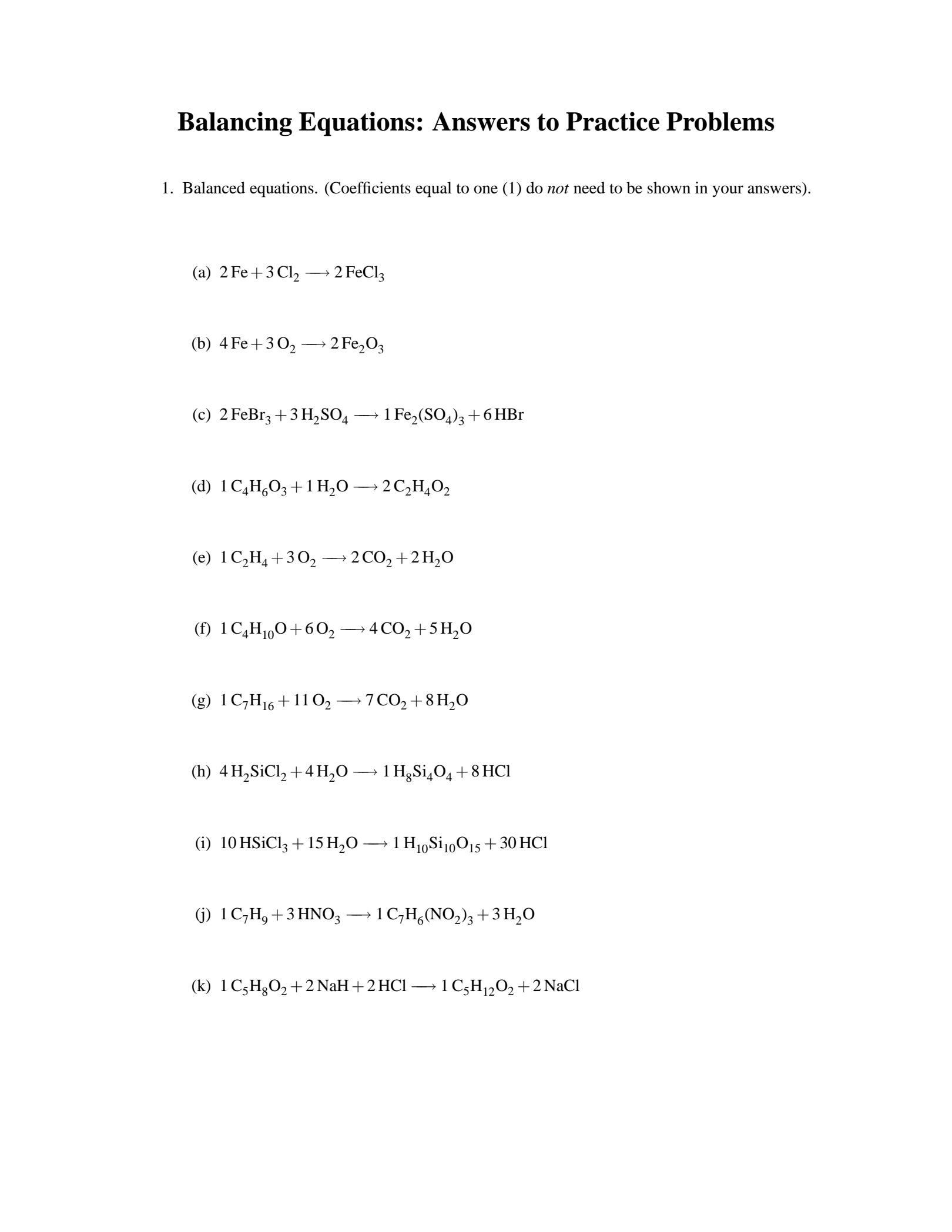 By regularly practicing balancing equations with answers, students can reinforce their understanding of chemical reactions and improve their ability to predict the outcomes of different reactions. This can be particularly helpful when studying more complex topics in chemistry, such as stoichiometry and chemical kinetics. Additionally, mastering the skill of balancing equations can help students excel in their chemistry coursework and prepare them for future studies and careers in the field.