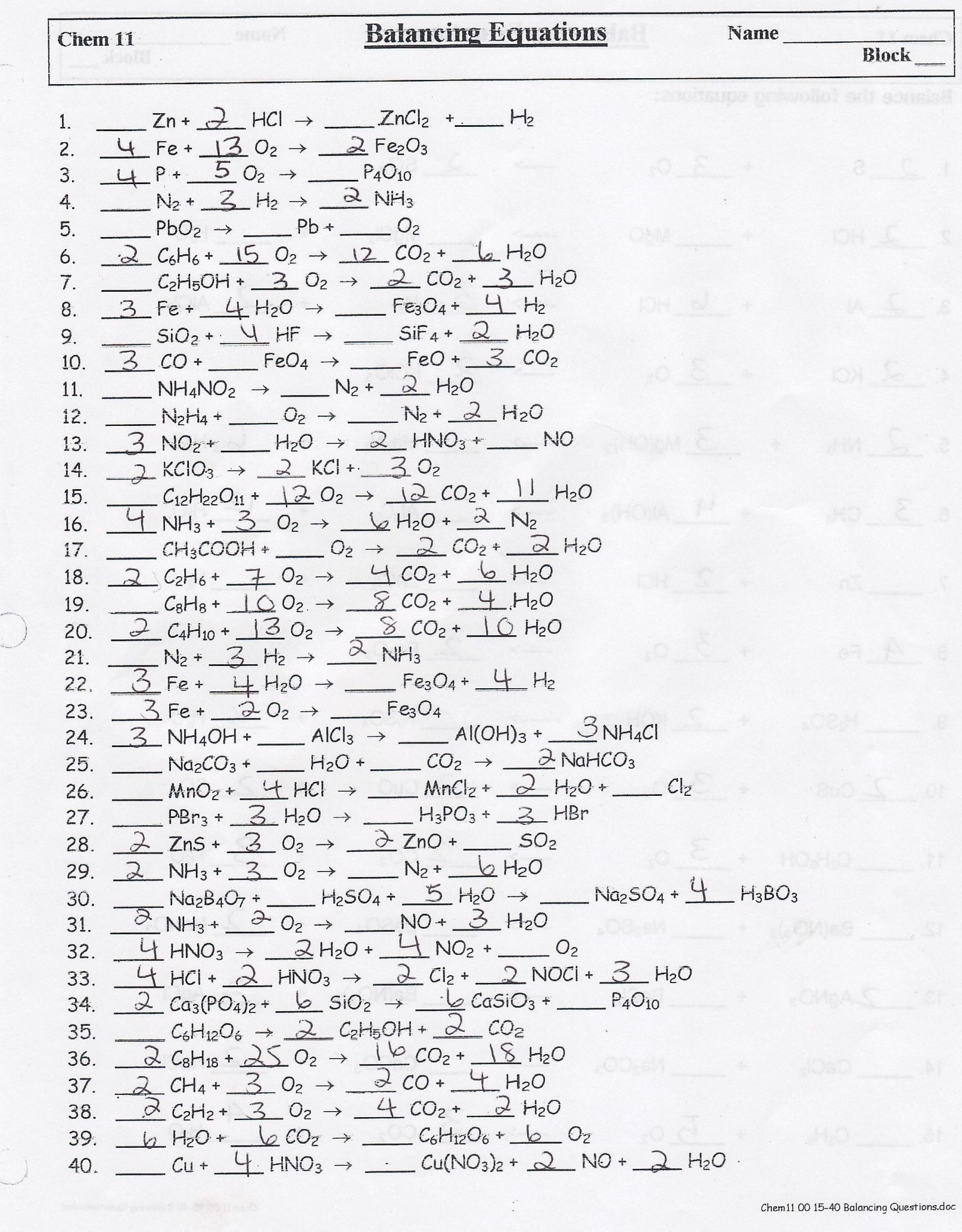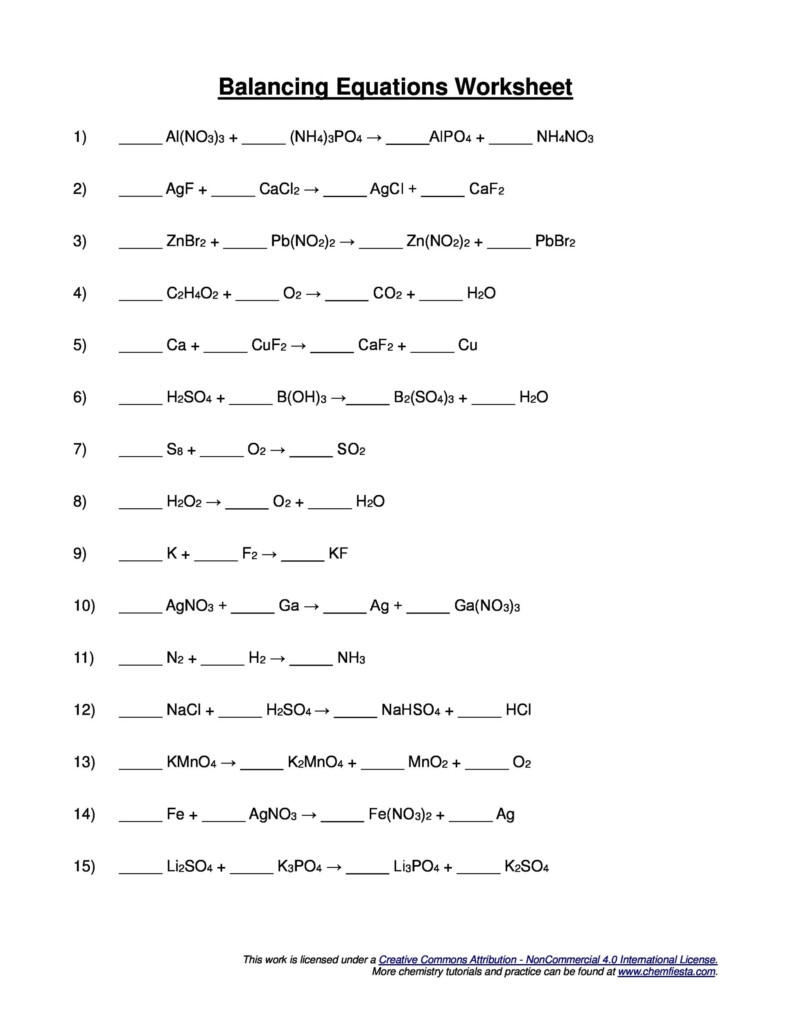 When it comes to chemistry, balancing equations is a fundamental skill that every student must master. This process involves ensuring that the number of atoms of each element on the reactant side is equal to the number of atoms on the product side. Balancing equations worksheet 1 is a great way for students to practice this skill and reinforce their understanding of chemical reactions.