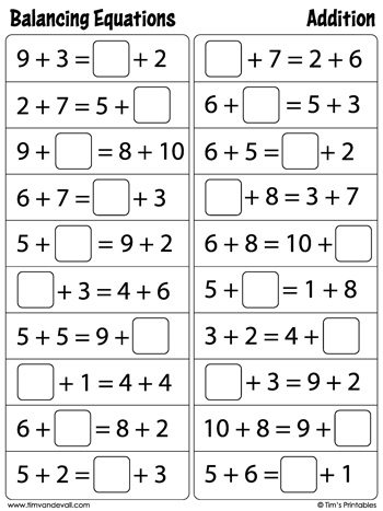 Balancing Equations Worksheets