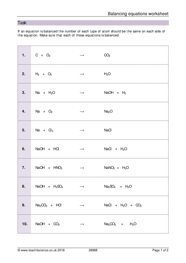 By working through balancing equations worksheets, students can improve their understanding of chemical reactions and develop problem-solving skills. These worksheets are also a great way for teachers to assess their students’ comprehension of the topic and provide feedback on areas that may need improvement.