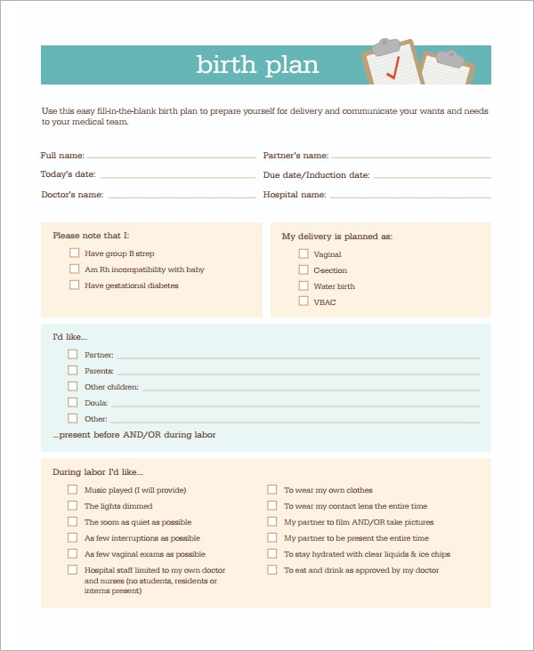 Birth Plan Template Pdf Awesome 50 Free Birth Plan Templates Word Pdf