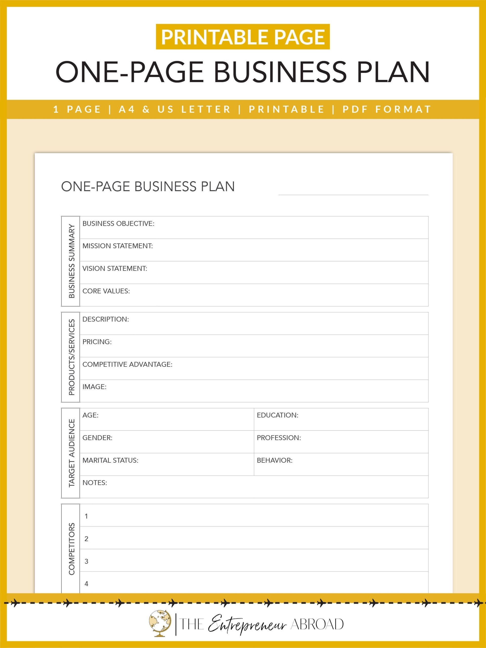 Another option is the “One-Page Business Plan Template” from The $100 Startup, which condenses the key elements of a business plan into a concise one-page document. This template is perfect for entrepreneurs who prefer a more streamlined approach to business planning.