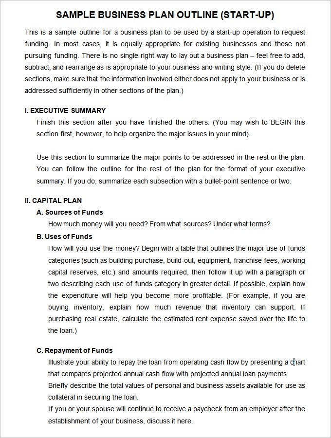 Business Start Up Plan Template