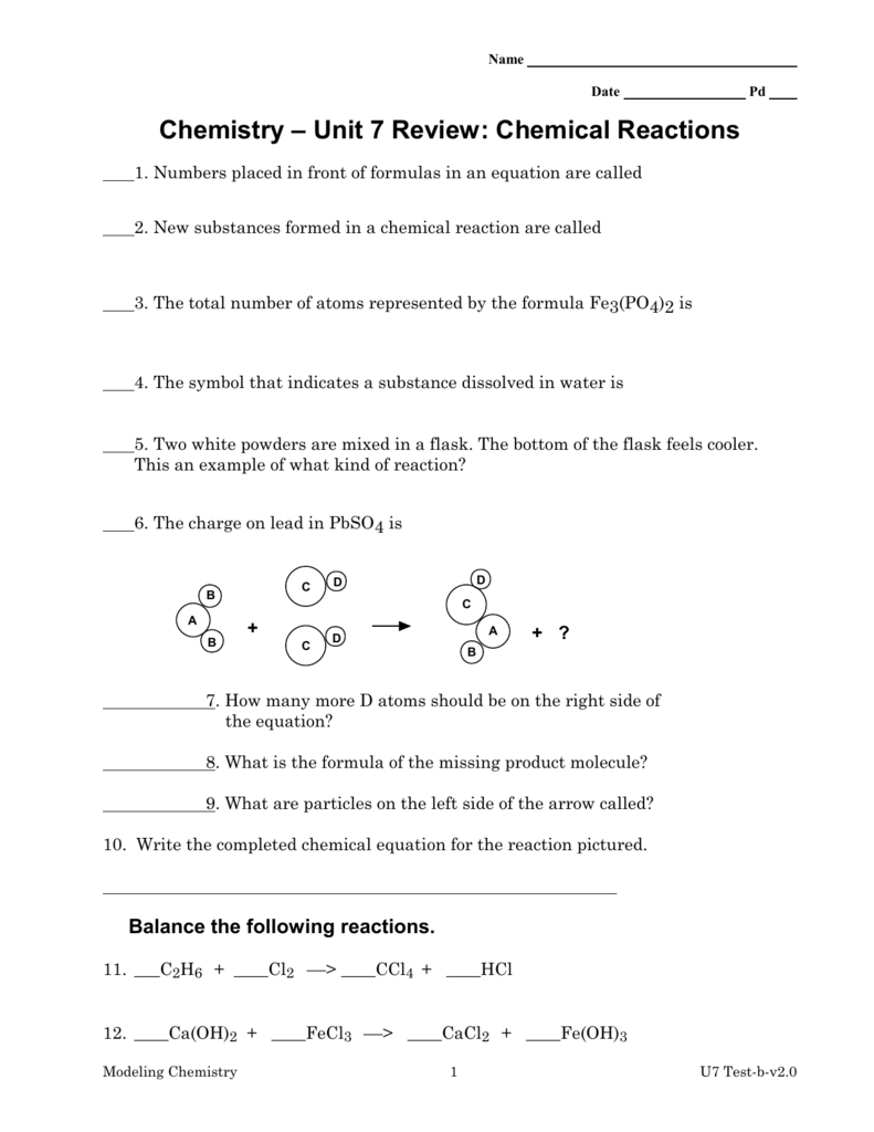 Chemistry Unit 7 Reaction Equations Worksheet 1 is a key tool for students to practice balancing chemical equations and understanding the concepts of reactions. This worksheet provides a series of equations for students to work through, helping them to develop their skills and knowledge in this fundamental aspect of chemistry.
