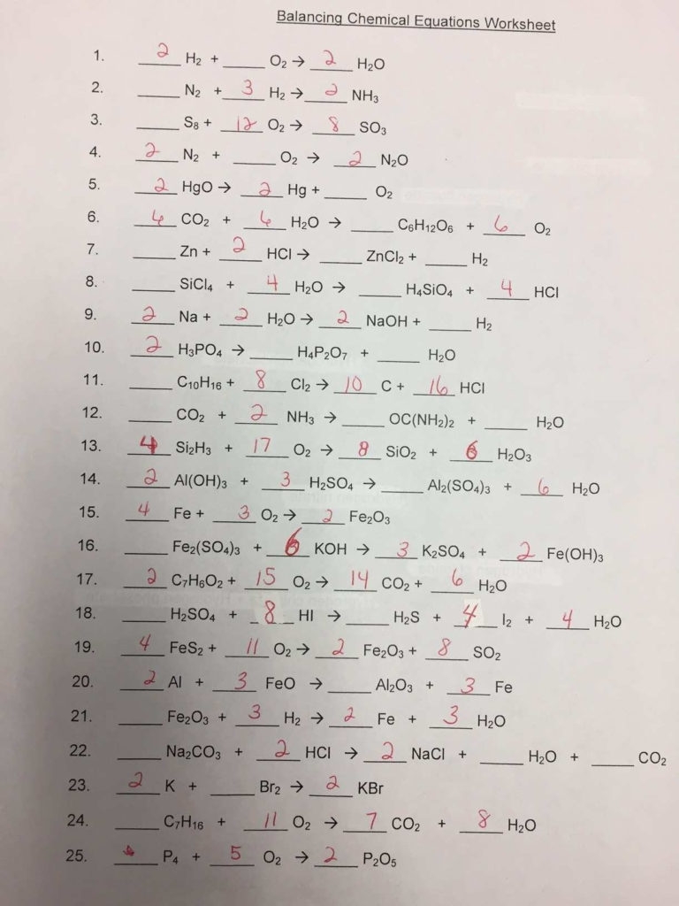 Download and Print chemistry worksheet balancing equations answer key Listed below