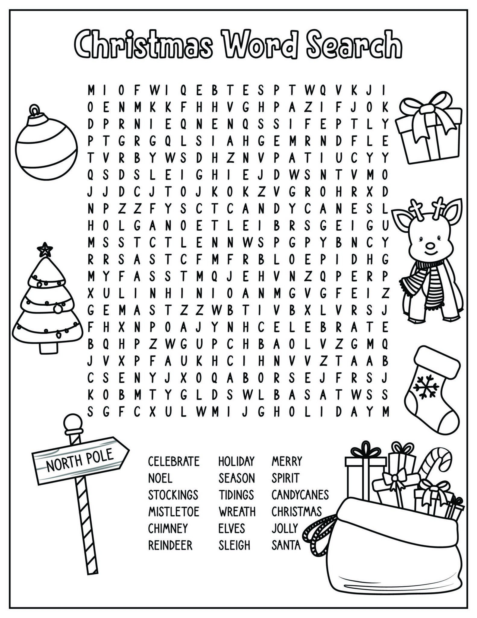 Another fun printable activity is the Christmas word search. Kids can search for holiday-themed words like “ornaments,” “snowflake,” and “hot cocoa” in a grid of letters. This activity helps improve vocabulary and spelling while keeping children entertained.