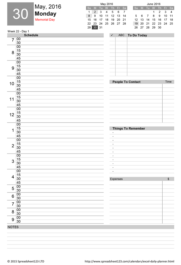 Download and Print daily planning template Listed below