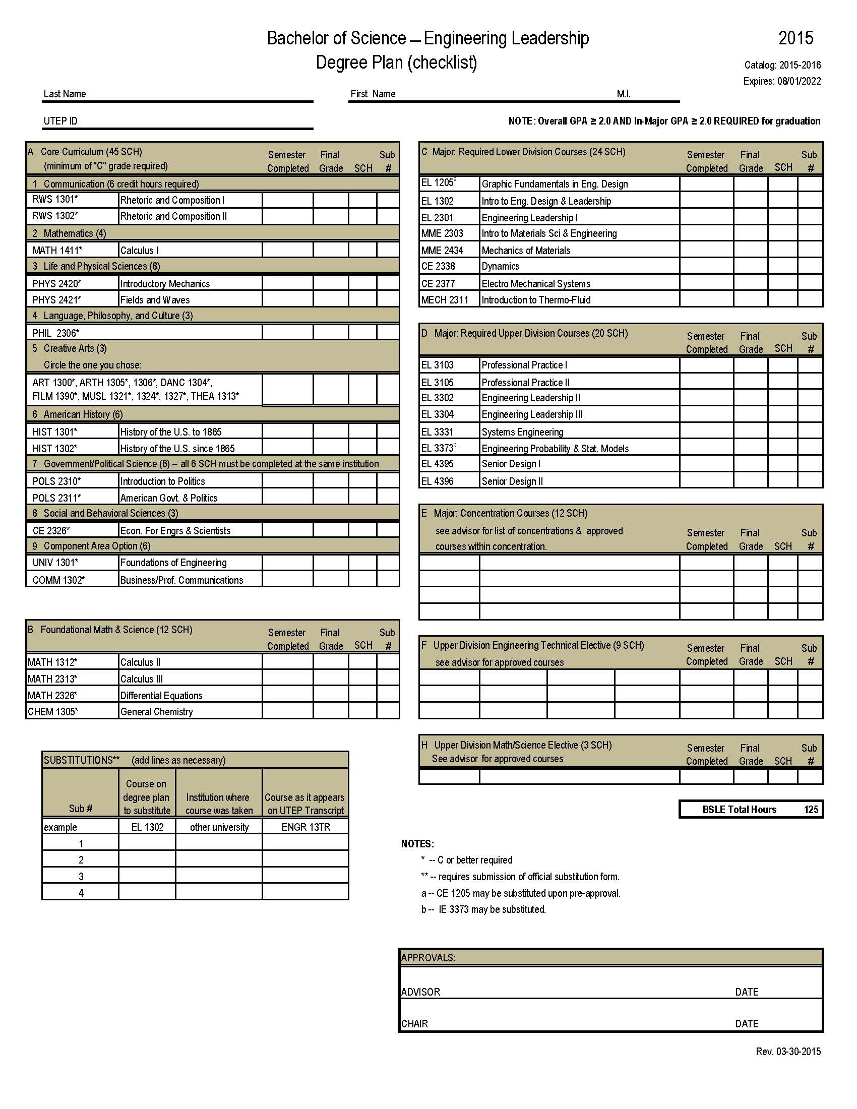 Download and Print degree plan template Listed below