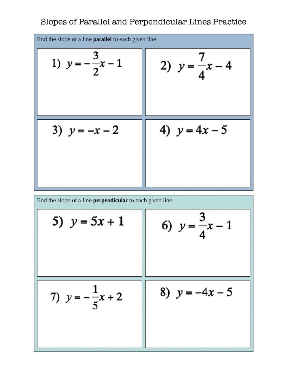 Slope Of Parallel And Perpendicular Lines Practice Worksheet