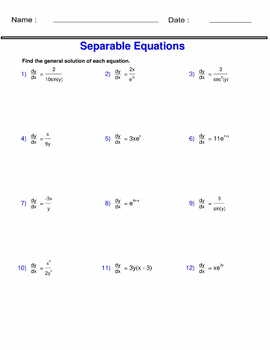 One common type of problem found on a differential equations worksheet is solving separable differential equations. These equations can be separated into two equations that only involve the independent and dependent variables, making them easier to solve. By practicing these problems, students can learn the techniques required to solve this type of equation efficiently.