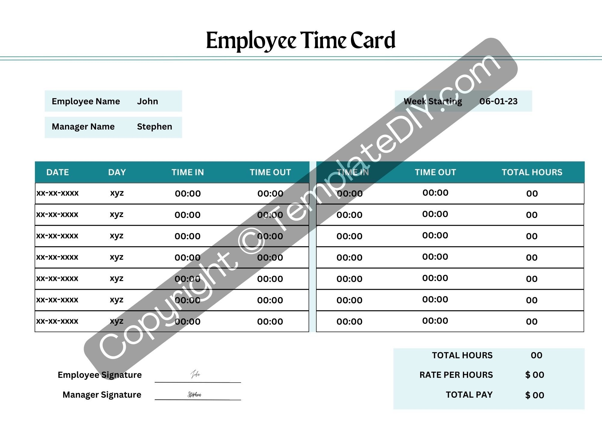 An Employee Time Card Template Is A Pre designed Document That Allows