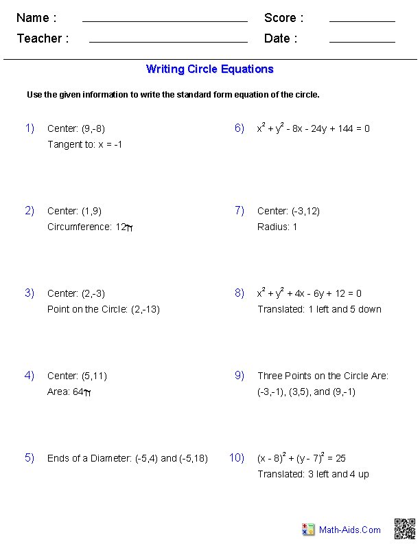 Understanding the equation of a circle is a fundamental concept in geometry. Circles are a unique shape with specific properties, and being able to write the equation of a circle is a valuable skill. This worksheet will help students practice and reinforce their knowledge of this important topic.