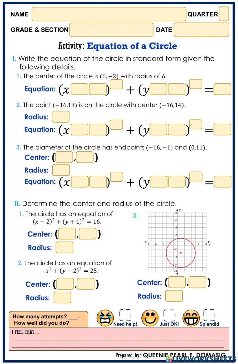 Working through equation of the circle worksheets can also help students improve their algebraic skills and problem-solving abilities. By manipulating the equations and applying algebraic techniques, students can strengthen their overall math skills and better prepare themselves for more advanced topics in geometry and calculus. These worksheets are a valuable tool for reinforcing concepts and building a strong foundation in mathematics.