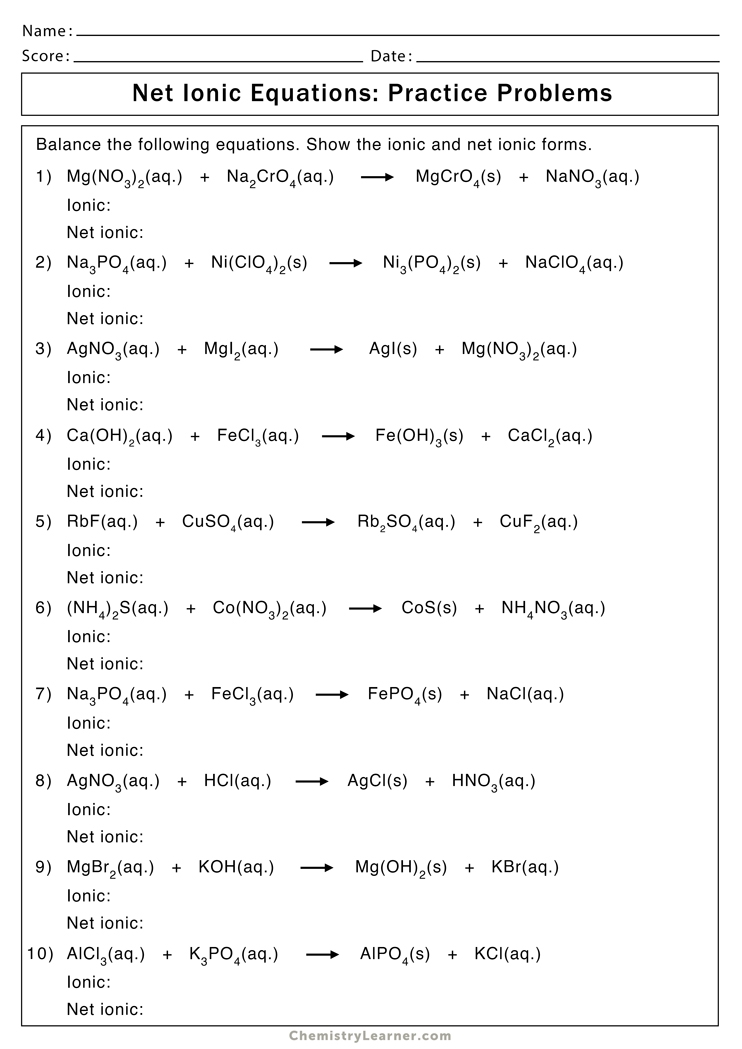 Net Ionic Equation Worksheets Free Printable