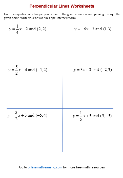 Perpendicular Lines Worksheets printable Online Answers Examples