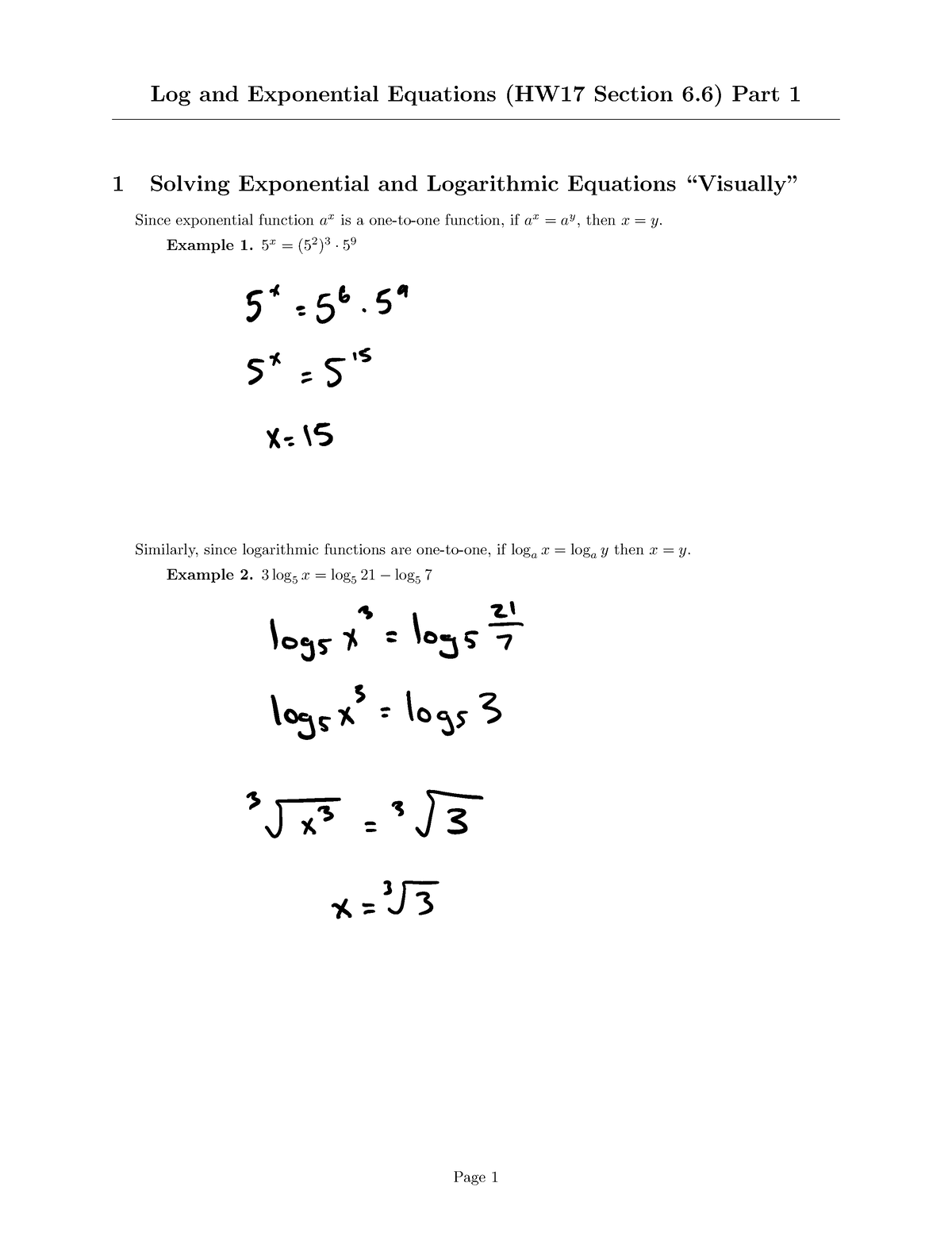Exponential and Log Equations Worksheet
