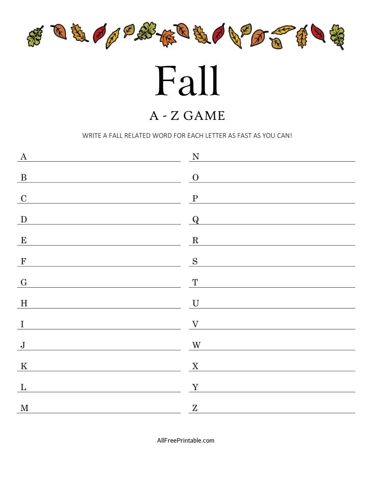 Fall A Z Game Free Printable