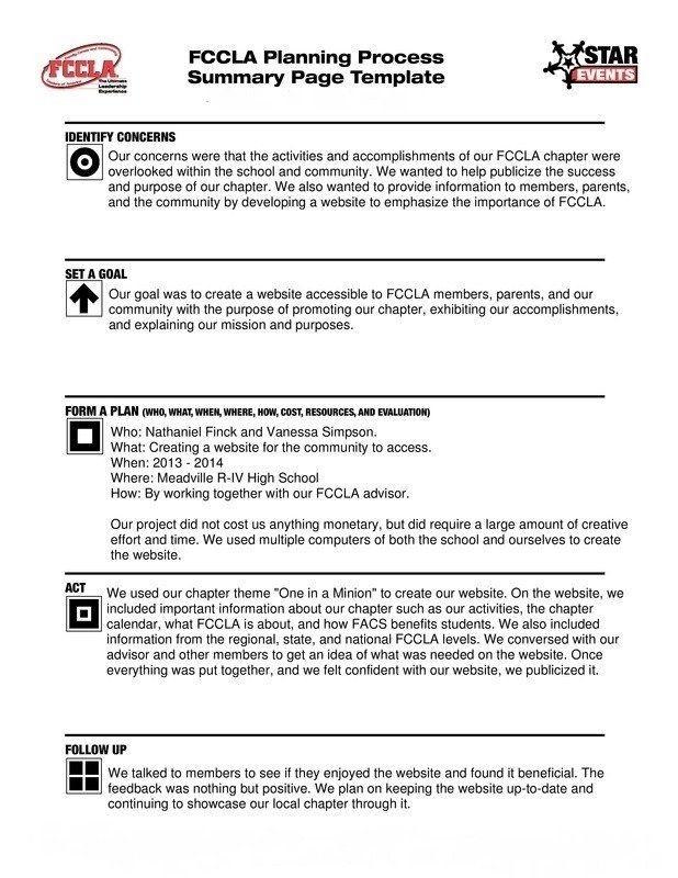 Download and Print fccla planning process template Listed below