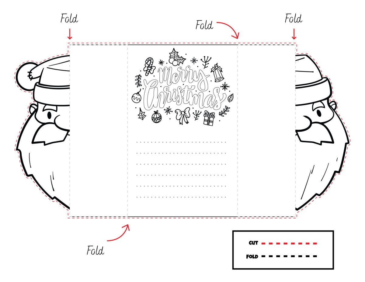 Foldable Template Printable Christmas Cards to Color
