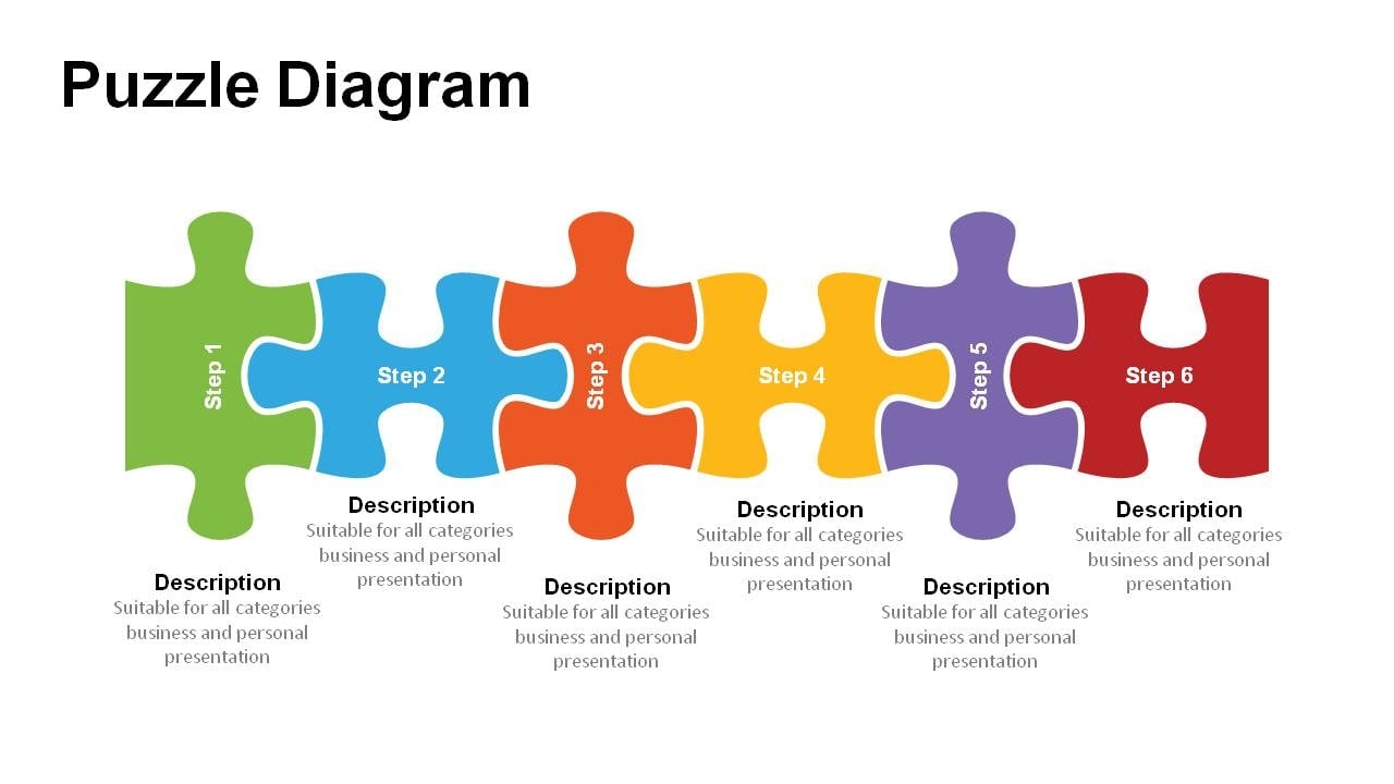 Our template also allows you to easily rearrange and reassemble the puzzle pieces to create different visual effects and emphasize different points. Whether you want to highlight a specific piece of information or show the interplay between multiple ideas, our template gives you the flexibility to do so with ease. Plus, the sleek and modern design of the puzzle pieces will add a polished and professional look to your presentations.