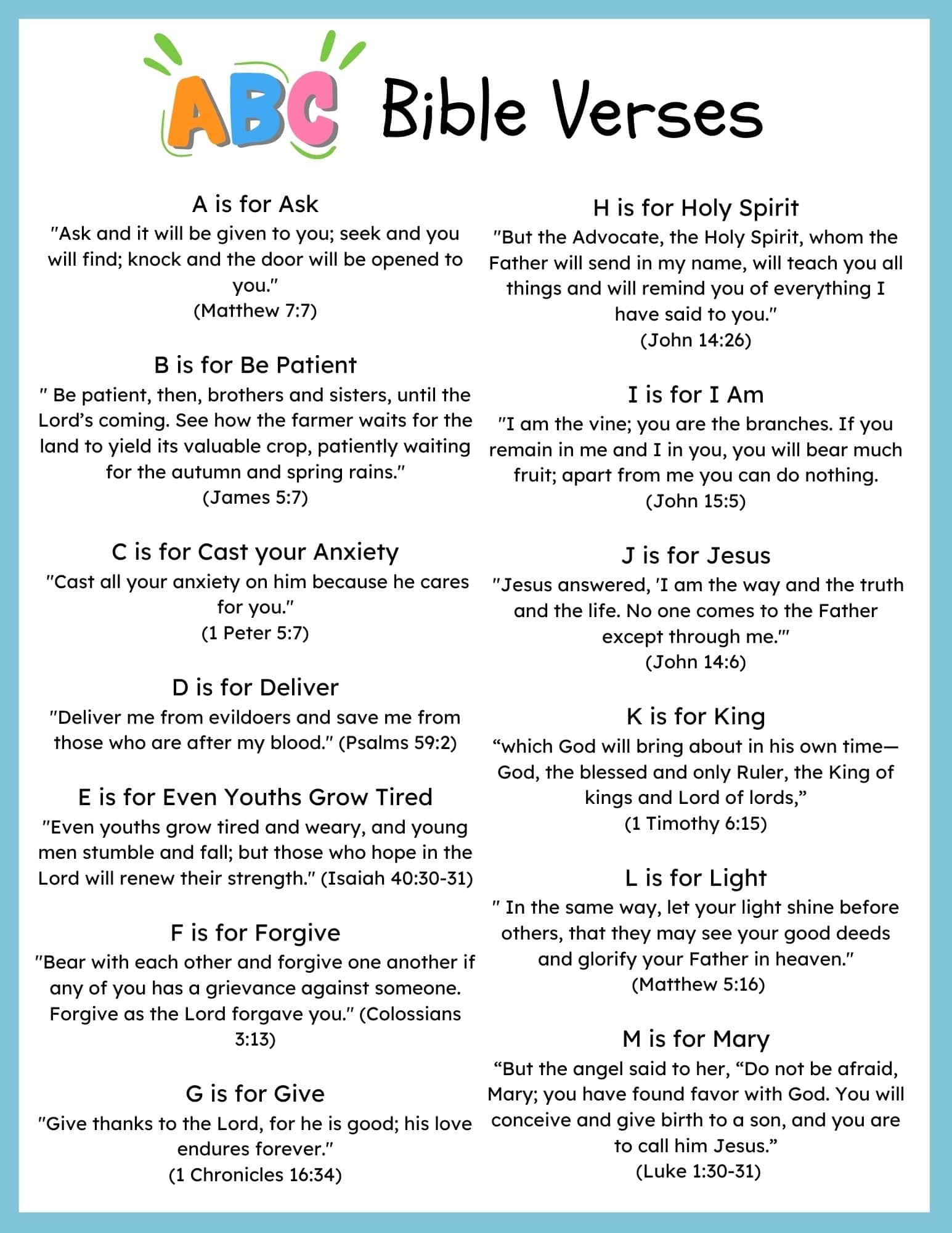 Free Printable Bible ABC Verses