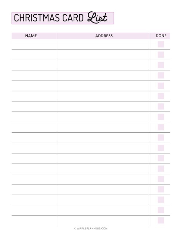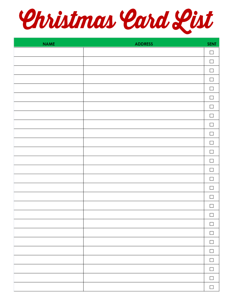 Get started today by downloading a free printable Christmas card list template and start organizing your card-sending now!