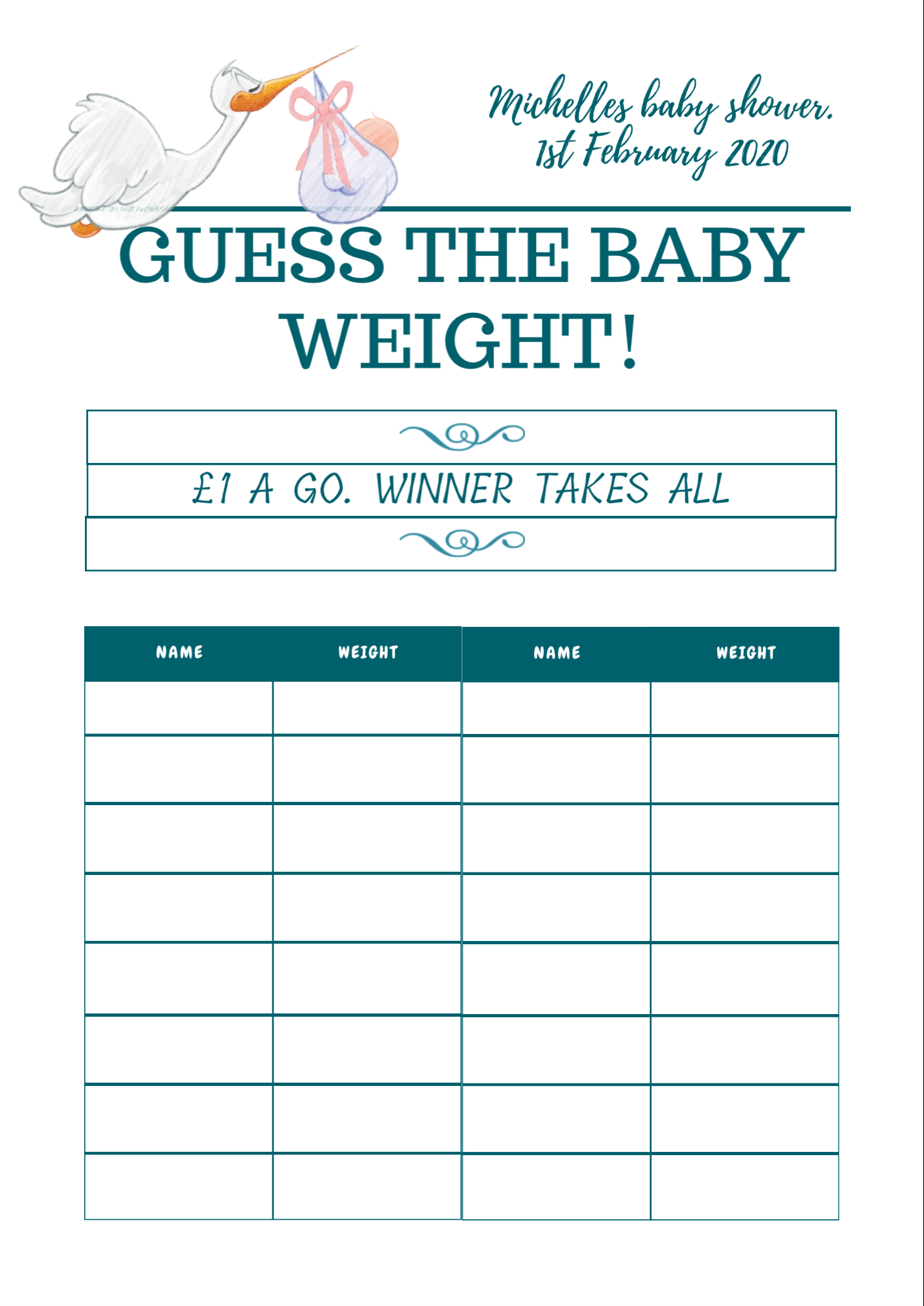2. Have guests fill out their name, contact information, and their guess for the baby’s birthday on the card.
