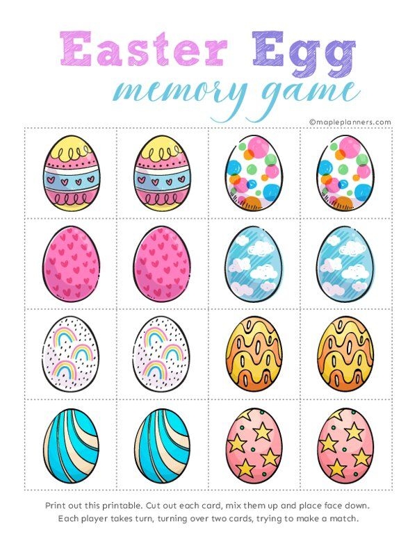 This memory game is not only fun, but it also helps to improve concentration, visual memory, and cognitive skills in children. It’s a great way to keep kids entertained during Easter gatherings or rainy days indoors. Plus, with our free printable game, you can easily print out as many copies as you need for multiple players to enjoy!