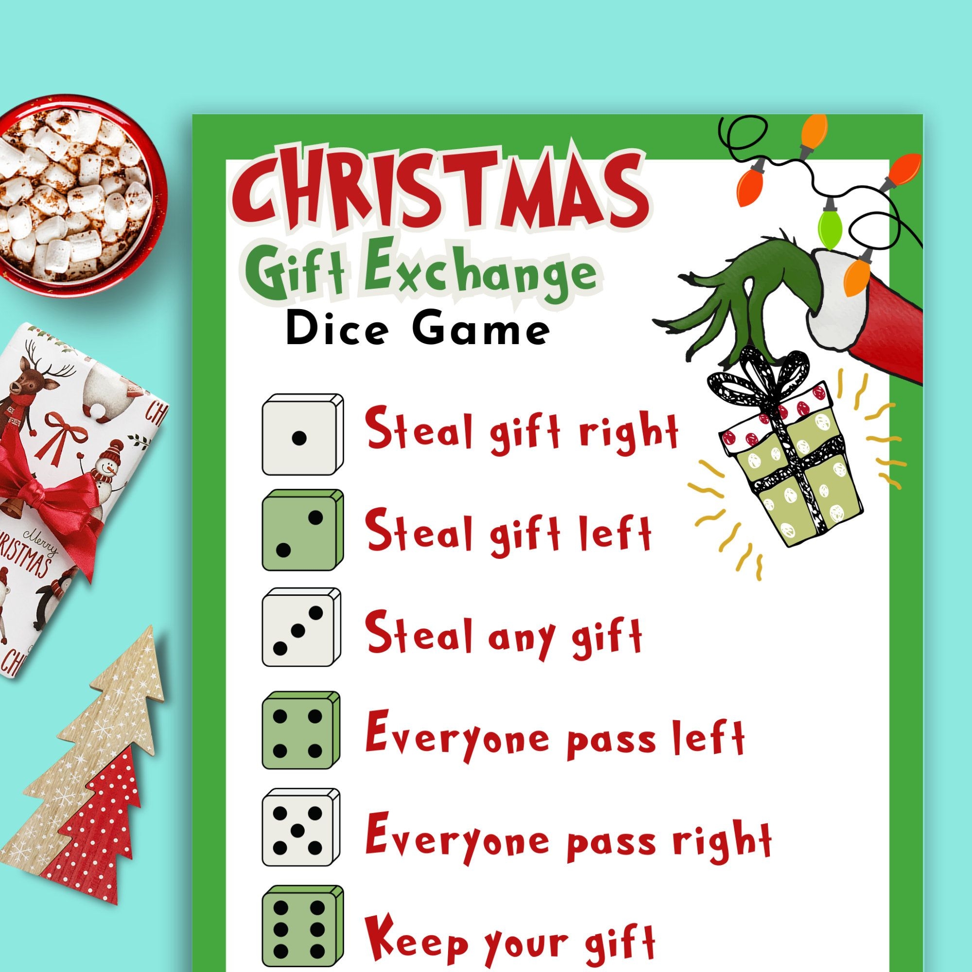 Free White Elephant Gift Exchange Dice Christmas Printable